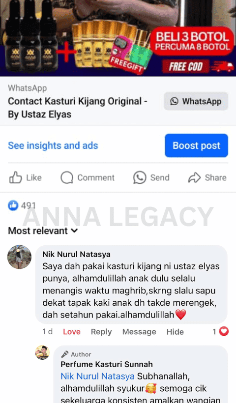 Lebih 100,000+ Pengguna Berpuas Hati Dengan Wangian Kasturi Asli Dari Anna Legacy