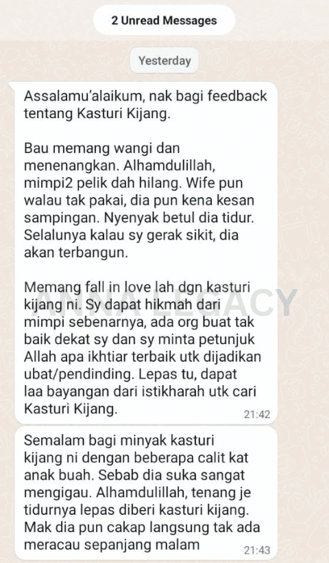 Ramai pelanggan kami kembali hidup tenang asbab ikhtiar dengan kasturi ini dengan izin Allah….
